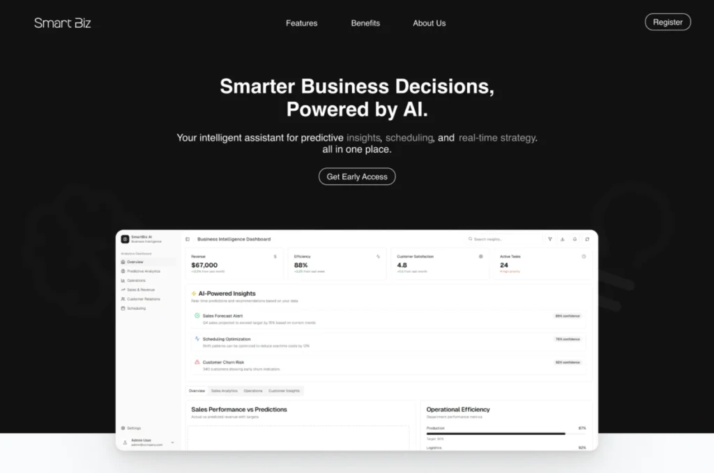 SmartBiz is an all-in-one business intelligence platform powered by AI. Unlike traditional dashboards that just show what happened, SmartBiz focuses on what will happen. It integrates sales data, scheduling, and team performance metrics to provide predictive insights and real-time strategic recommendations.